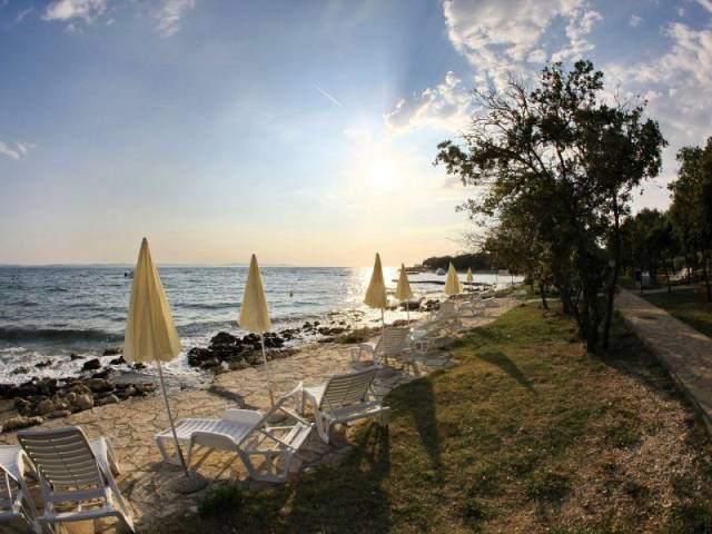 El complejo de apartamentos Petrcane está situado al norte de Dalmacia, en Petrcane, al inicio de la península de Punta Skala y a 13 km de Zadar, célebre por sus monumentos históricos. Es el punto de partida ideal para descubrir la región y sus maravillas. De interés en Zadar y en los alrededores: - Zadar (a 13 km): una auténtica colección de tesoros arqueológicos e históricos, entre ellos la iglesia de San Donato erigida en el siglo IX o el monasterio franciscano que data del siglo XV. No dejes de admirar los "órganos marinos", totalmente únicos en el mundo, donde el mar produce una melodía misteriosa por el flujo y reflujo de las olas. - Nin (a 11 km): situada en una pequeña isla unida al continente por dos puntos, es famosa por su magnífica bahía con playas de arena fina. De interés: la iglesia de la Santa Cruz (la catedral más pequeña del mundo), la iglesia de San Jacobo, la catedral de San Anselmo, las ruinas del templo romano más grande, el monumento al duque Branimir, las puertas de la parte baja de la ciudad y el puente de piedra, la plaza Kraljevac y su fuente, la iglesia de la coronación de San Nicolás, la estatua de Gregorio de Nin... Nin también está repleta de tradiciones, como por ejemplo tocar el dedo gordo del pie de la estatua de Grgur Ninski que, según la tradición, da suerte. - Sibenik (a 104 km): La ciudad que une el pasado glorioso y las bellezas naturales. De interés: la catedral de San Jacobo, la construcción más importante del Renacimiento en Croacia. - Trogir (a 143 km): Patrimonio Mundial de la Unesco, también es conocida como "la pequeña Venecia". Erigida sobre el emplazamiento de la antigua ciudad griega de Tragurion y rodeada de fortalezas medievales, la ciudad rebosa de magníficos monumentos que son testigo de su variada historia: la catedral de San Lorenzo con su famoso portal del maestro Radovan, la Loggia del municipio que data del siglo XV, el ayuntamiento, el palacio de Cipiko y el monasterio benedictino del siglo XI. - Split (a 170 km): también forma parte de la lista del Patrimonio Mundial de la Unesco, y actualmente es el puerto y la ciudad de mayor tamaño de Dalmacia. Alberga callejuelas estrechas en torno a las cuales podrás admirar la catedral de San Duje, las ruinas del palacio de Diocleciano, el viejo templo de Júpiter, las iglesias romanas de los siglos XII y XIII y otros edificios del Renacimiento y el barroco. No dejes de pasearte bajo las puertas de Oro y de Plata, ni de atravesar las viejas plazas de la ciudad para llegar hasta el mercado y la Riva, un lugar ideal para deambular y hacer compras. - Se puede acceder a múltiples parques nacionales para hacer una excursión de un día: el Parque Nacional de Plitvice (a 130 km), el Parque Nacional de las cataratas de Krka (a 100 km), el Parque de Kornati (excursión solo en barco) y el Parque de Paklenica (a 53 km).