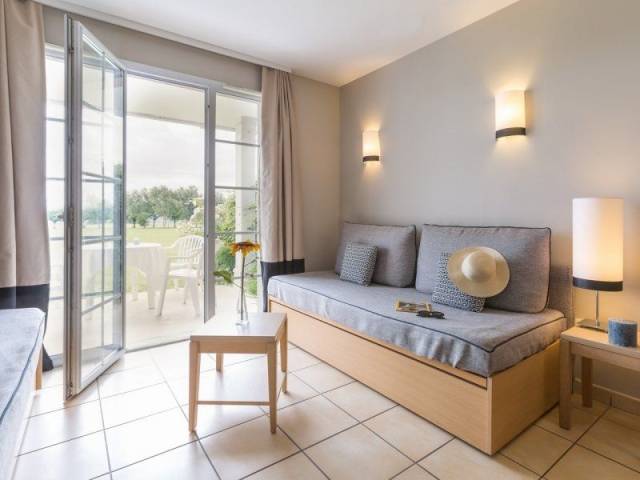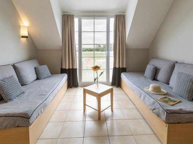 En Normandía, a medio camino entre la Costa Floriday el monte St.-Michel, Port-en-Bessin-Huppain es un animado puerto de pesca en una costa cargada de historia, en la que se encuentran las playas del desembarco. Omaha Beach, en la localidad de Colleville-sur-Mer, es la más famosa. - Port-en-Bessin-Huppain dispone de un rico patrimonio característico de su ubicación de litoral, con su torre Vauban, declarada monumento histórico, su antiguo barrio de pescadores y su casa de Les Feux. - El complejo de apartamentos se encuentra en el prestigioso campo de golf de Omaha Beach, incluido en la lista de los 50 primeros recorridos de Francia. - Sumérgete en la historia de la Segunda Guerra Mundial en el cementerio americano de Colleville-sur-Mer y el museo conmemorativo, que dominan la playa de Omaha Beach, llamada "la sangrienta Omaha". - La ciudad de Caen y sus dos impresionantes abadías se encuentran a unos 37 minutos del complejo de apartamentos.