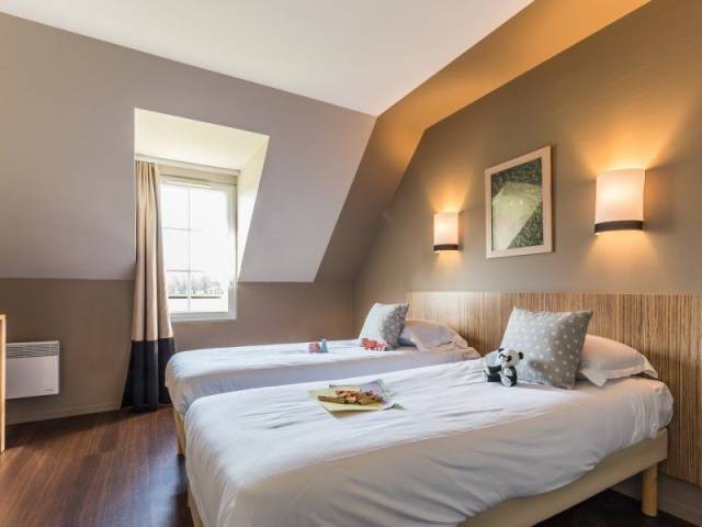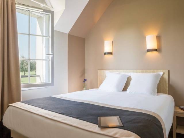 Ubicado en un parque de 7 hectáreas, en el prestigioso campo de golf de Omaha Beach. Las 2 piscinas climatizadas: una interior abierta todo el año y otra exterior abierta de mediados de mayo a septiembre. La inmensa playa de Omaha Beach (a 8 km) y un litoral natural preservado.