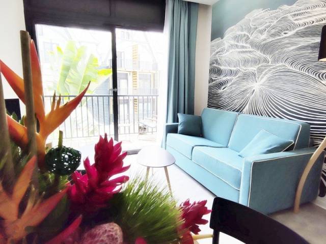 Tu complejo de apartamentos a 50 m de la playa de Saint-Leu. Una piscina exterior climatizada. Apartamentos de categoría con un servicio personalizado y a medida.