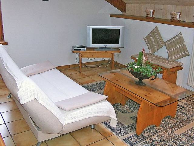 "Les Galets", apartamento de 4 estancias 74 m2 en 2 plantas. Abuhardillado, con mobiliario confortable y agradable: salón-comedor con chiminea nórdica. 1 dorm. con 1 cama de matrimonio. 1 dorm. con 2 camas. Cocina abierta (4 fogones, horno, lavavajillas, microondas, congelador, cafetera eléctrica, set de Fondue (queso)) con mesa de comedor. Baño/WC. Planta superior: 1 dorm. con 2 camas. Terraza-jardín 25 m2. Vista bonita al valle y al paisaje. El alojamiento dispone de: Internet (Wifi, gratis). Lector de Blu-ray. Plaza de aparcamiento (2 Coches) junto a la casa. A tener en cuenta: apartamento para no fumadores. Permitido máximo 1 mascota / perro.