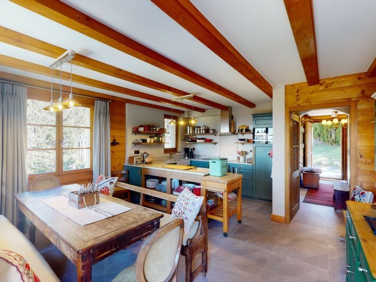 "Chalet Tetras", chalet de madera 8 estancias 220 m2 en 3 plantas, orientación sur. Con mobiliario muy confortable y de buen gusto: salón pequeño con TV (pantalla plana). 1 dorm. doble con 1 cama de matrimonio (160 cm), baño. Salida al jardín, orientación sur. Grande cocina (horno, lavavajillas, 4 Placas de inducción, tostadora, hervidor de agua eléctrico, microondas, cafetera eléctrica, Cápsulas de café (Dolce Gusto) extra, horno Raclette, set de Fondue (queso)) con mesa de comedor. Salida al jardín, orientación sur. WC separado. Planta superior: salón grande con chimenea. Salida a la terraza, orientación sur y orientación oeste. 1 dorm. doble con 1 cama de matrimonio (180 cm), baño/WC y doble lavabo. Salida a la terraza, orientación oeste. Planta superior 2: 1 dorm. doble con 2 camas (90 cm). Salida al balcón, orientación sur. 1 dorm. doble con 2 camas (90 cm). Salida al balcón, orientación sur. 1 dorm. doble con 2 camas (90 cm), lavabo y ducha/WC. Baño/ducha/WC. Balcón pequeño, orientación sur, terraza, orientación sur y orientación oeste, jardín pequeño, orientación sur. Muebles de terraza. Vista parcial a las montañas. El alojamiento dispone de: lavadora, secadora. Internet (Wifi, gratis). Plaza de aparcamiento (2 Coches).