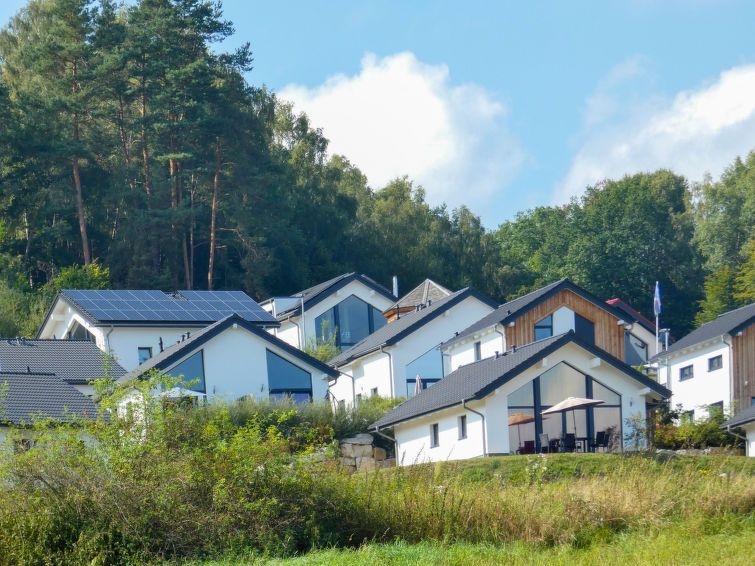 Obernsees a 7 km de Mistelgau: Resort "Feriendorf an der Therme Obernsees", idóneo para niños, moderno. En las afueras de la localidad, a 2 km del centro de Obernsees, lugar tranquilo, soleado, elevado en una pendiente, a 100 m de un bosque, en una calle sin salida. Comunitario: parque infantil (tobogán, columpio, cajón de arena). Privado: jardín pequeño con césped. En el complejo: recepción, calefacción central. Tienda 6 km, tienda de comestibles 6 km, supermercado 6 km, restaurante 2 km, bar 6 km, panadería 750 m, café 6 km, parada de autobús "Therme Obernsee" 600 m, estación de tren "Bayreuth" 17 km, piscina 12 km, piscina termal "Therme Obernsees" 1 km. Rutas de senderismo desde la casa, caminos para bicicletas 100 m. Zonas de esquí populares fácilmente accesibles: Fichtelgebirge 38 km. A tener en cuenta: coche recomendable. La foto corresponde a una de las viviendas. Todas las casas/apartamentos están diseñadas y amuebladas de manera diferente. Casa 4 estancias 78 m2 en 2 plantas, en la planta baja. Vivienda adecuada para 6 adultos + 2 niños. Con mobiliario moderno y agradable: salón-comedor con TV cable (pantalla plana). Salida a la terraza. 1 dorm. con 1 cama doble (2 x 90 cm, 200 cm de longitud), ducha/WC. Rincón-cocina (horno, lavavajillas, 4 placas de vitrocerámica, tostadora, hervidor de agua eléctrico, cafetera eléctrica). Planta superior: 1 dorm., abuhardillado con 1 cama doble (2 x 90 cm, 200 cm de longitud), ducha/WC. 1 dorm., abuhardillado con 1 cama doble y ducha/WC. Calefacción por suelo. Muebles de terraza. El alojamiento dispone de: trona (extra). Internet (Wifi, gratis). Plaza de aparcamiento (1 coche) junto a la casa. A tener en cuenta: casa para no fumadores. Detector de humo.