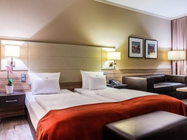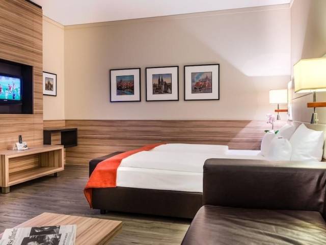Situado a sólo unos minutos del centro de la ciudad, nuestro diseño futurista y un ambiente moderno ofrecen como resultado una atmósfera auténticamente exclusiva. Podrá apreciar totalmente un placer completo para el cuerpo, la mente y el paladar Los huéspedes quedarán maravillados ante las 128 espaciosas habitaciones y 3 exclusivas suites, los materiales de gran calidad, los refinados muebles y la excelente iluminación.Todo esto, unido a una tecnología integrada de forma discreta, ofrece a los huéspedes un ambiente cómodo, relajado y moderno orientado al trabajo o unas vacaciones relajantes. Comience el día de acuerdo con sus deseos y escoja sus platos favoritos en nuestro exquisito desayuno "fitness" tipo bufé. Deléitese con una especialidad culinaria en nuestro restaurante gourmet "Alte Ziegelei" y ponga el broche final a la experiencia con un delicioso cóctel en nuestro bar de diseño. Para trabajar de una forma más eficiente y en un entorno estimulante, nuestros huéspedes cuentan con seis salas de reuniones disponibles para sus encuentros de trabajo y totalmente equipadas con las últimas tecnologías. Nuestro experimentado equipo está listo para planificar y organizar sus eventos y también ofrecemos espacio para sus fiestas y reuniones privadas. Cualquiera que sea el motivo de su viaje, el Best Western Premier Novina Hotel Regensburg le ofrece el espacio de alojamiento idóneo para su estancia en Regensburg.