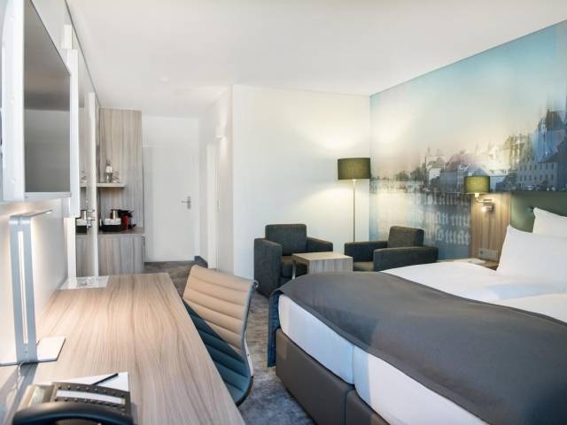 La arquitectura románica se encuentra con la arquitectura gótica: con sus alrededor de 1.500 edificios protegidos por el patrimonio, Ratisbona tiene el casco antiguo medieval más grande de Alemania. Además de esto, el puente más antiguo conservado en Alemania cruza el río Danubio: el Steinerne Brücke o Puente de Piedra. Desde principios del siglo VIII, Ratisbona ha sido una diócesis y ya en la Edad Media se la consideraba una próspera ciudad comercial. Incluso hoy en día, todavía ofrece a los visitantes la sensación de emprender un verdadero viaje a través de la historia. Simplemente muévase a una de nuestras maravillosas 96 habitaciones. Solo, en pareja o con uno o más hijos.