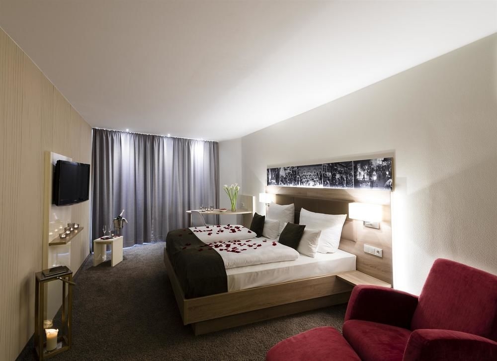 En el Best Western Plus Parkhotel Velbert estamos a su entero servicio. Relájese enlas habitaciones de la nueva categoría Feel Good. Amplio espacio parasu conferencia y para los más hermosos eventos nupciales. Aquí podrá disfrutar de vistasa los frondosos parques y de un excelente servicio con una gran sensación de bienestar. Dos nuevosrestaurantes con terraza. El restaurante Zur Gießerei ofreceplatos regionales y de temporada, siempre frescos y con las mejores vistas. El hotel tienesus propias zonas verdes frente al parque recreativo municipal local. Disfrute de un frondoso entorno conun amplio espacio. Pistas de jogging, minigolf y una pequeña piscina públicapara despejar la mente y renovar cuerpo y espíritu. Estacionamiento sinpreocupaciones urbanas. Disfrute de una agradable sensación de vacaciones durante su estancia. A solo 15 kilómetrosdel centro de exposiciones Messe Essen y a 25 kilómetros del aeropuerto de Düsseldorf.