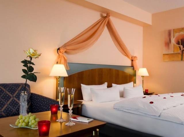 Este hotel urbano está situado en un barrio residencial de Weimar, a aproximadamente 10 minutos en coche del centro de la ciudad de Weimar. A solo 1 km de la autopista A4, situado entre Jena y Erfurt, este hotel de negocios ofrece unas comunicaciones excelentes con la red nacional de carreteras y con el recinto ferial de Erfurt.El hotel cuenta con restaurante, bar, sala de conferencias, cafetería y un total de 194 habitaciones. Otras instalaciones a disposición de los huéspedes en este hotel son vestíbulo con recepción 24 horas, ascensor, cafetería, conexión a Internet WiFi (de pago), servicio de habitaciones, servicio de lavandería (de pago), aparcamiento y servicio de alquiler de bicicletas.Cualquiera que se aloje en una de las habitaciones estándar lujosamente decoradas encontrará seguro la armonía y la relajación necesarias durante una estancia en un hotel. Cada una de las habitaciones dispone de un cuarto de baño privado con ducha/WC y secador de pelo, teléfono de línea directa, minibar, radio y TV vía satélite.Los huéspedes podrán darse un chapuzón en la piscina cubierta o relajarse en la sauna o la sala de vapor. Por un suplemento se ofrecen tratamientos de hidroterapia y masajes.Cada mañana se sirve desayuno de bufet y la cena está disponible a la carta.Si se llega por la autopista A4 por Bad Hersfeld-Eisenach-Dresde hay que salir en Weimar. El hotel está situado a 1 km más adelante por la B85 en dirección a Rudolstadt, a la derecha de la rotonda.