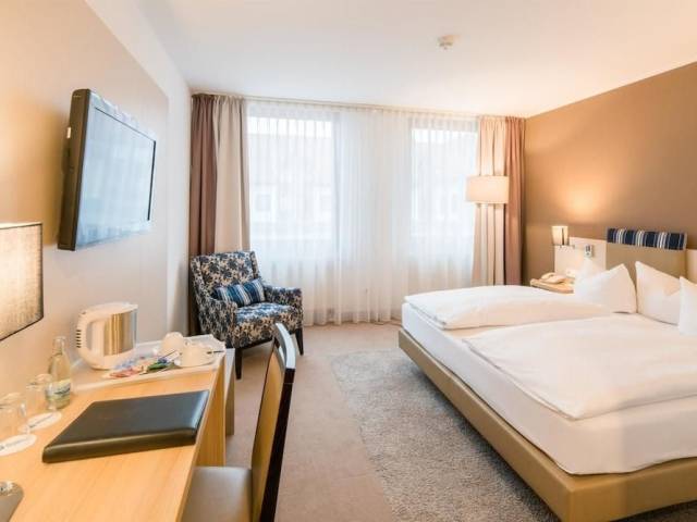 Nuestro hotel está ubicado en la zona central de Turingia, cerca de la autopista A4 y la A71 y a poca distancia del aeropuerto y el recinto ferial (a 15 kilómetros). A 20 kilómetros del centro de Erfurt. Nuestra céntrica ubicación le proporciona un excelente punto de partida para disfrutar de actividades de ocio y recorridos por Turingia.Este hotel de 4 estrellas cuenta con un total de 98 habitaciones, entre las que se incluyen 3 suites y 2 habitaciones para personas con limitaciones físicas.Las habitaciones están equipadas con acceso a Internet W-LAN, televisor, cafetera, tetera, plancha de vapor con tabla de planchar, secador de pelo y espejo cosmético.Aquí encontrará un total de 4 salas de reuniones y las condiciones idóneas para celebrar reuniones o seminarios en un moderno entorno con capacidad para 60 personas. La luz natural de las salas de congresos, el acceso a Internet W-LAN y el completo equipamiento profesional le proporcionan las condiciones idóneas para celebrar un evento de éxito fuera de la oficina.Nuestro restaurante con terraza de verano cuenta con una impresionante vista al paisaje de los castillos "Drei Gleichen", ofreciendo especialidades regionales e internacionales de temporada y aforo para un total de 100 comensales. El acogedor bar del vestíbulo cuenta con capacidad para un máximo de 50 personas.Estacionamiento gratuito para huéspedes en el hotel.