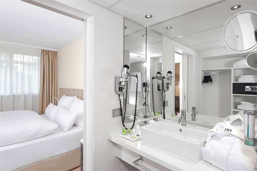 Reformado en el 2014 el hotel NH Fürth Nürnberg está situado en el centro de Fürth, a 15 minutos de Núremberg en coche. Se encuentra al lado de la principal calle comercial de la ciudad y en frente del parque municipal, un lugar perfecto para salir a correr o dar un agradable paseo. Puedes ir paseando a los cafés, bares y restaurantes del casco antiguo y hay una parada de metro a cinco minutos andando del hotel. Nuestras 118 habitaciones son amplias y modernas. Todas ellas son Suites, con la sala de estar separada de los dormitorios y dos televisiones. Algunas gozan de vistas al parque. Todos disponen de aire acondicionado, WiFi gratuito y televisión vía satélite Sky Empieza el día con un abundante desayuno buffet en nuestra elegante sala de desayuno. Después, puedes relajarte en nuestro excelente bar o en nuestra sauna de última generación. También disponemos de garaje privado.