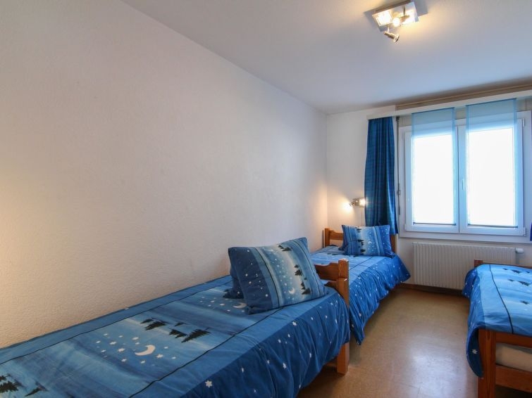 El apartamento familiar de 3 habitaciones se encuentra en la segunda planta del chalet "Casa Yolanda". Con 2 dormitorios, un salón, cocina y 2 cuartos de baño, es perfectamente adecuado para familias, o para aquellos que prefieren no subir las escaleras a los apartamentos de las plantas superiores. Los 7 apartamentos, incluido el apartamento Mireille, están orientados al sur, con vistas al valle, a los bosques de los alrededores y a los picos Breithorn y Bettlihorn. Dormitorio 1: Dos - 3 camas individuales, cómoda de 2 cajones, mesa y silla con vistas al bosque, hacia el pueblo de Fieschertal y a lo lejos el pico Gran Wannenhorn en dirección a Finsteraarhorn. Espacio para una cama infantil adicional. Dormitorio 2: Dos camas individuales combinadas como cama doble, con mesillas de noche y lámparas, una cómoda de 4 cajones, un lavabo con espejo y 2 sillas. También aquí hay espacio para una cama infantil adicional. Vista de la aldea de Wichel con sus casas iluminadas por el sol. Cuarto de baño1: bañera y ducha, lavabo con botiquín con espejo y mueble de lavabo; secador de pelo, albornoces y toallas de baño. Mucha luz natural. Cuarto de baño 2: lavabo con espejo e inodoro. Amplio salón con suelo de baldosas, sofá esquinero con capacidad para 6-8 personas y TV. Aparador y armarios de pared. Comedor con mesa y 6 sillas. La mesa se puede ampliar según las necesidades. Cocina totalmente amueblada con cocina y horno eléctricos, frigorífico grande, lavavajillas, tostadora, juegos de fondue y raclette y cafetera. El gran balcón tiene una sombrilla y muebles de jardín, y es un gran lugar para relajarse. Desde el balcón se pueden ver los parapentes que planean por el aire y aterrizan justo delante de Casa Yolanda. También hay apartamentos de alquiler diario.