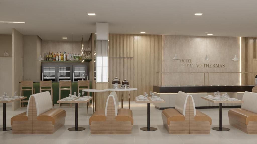 El Estação Termas Hotel se encuentra en Piratuba, a 1,8 km de Águas Termais de Piratuba, y ofrece alojamiento con piscina al aire libre, aparcamiento privado gratuito, bar y salón compartido. Este hotel de 4 estrellas ofrece servicio de habitaciones y servicios de conserjería. El alojamiento ofrece entretenimiento nocturno y recepción 24 horas.Las habitaciones disponen de aire acondicionado, armario, patio con vistas a la ciudad, baño privado, TV de pantalla plana, ropa de cama y toallas. El Estação Termas Hotel ofrece algunas habitaciones con vistas a la montaña y las habitaciones incluyen balcón. Las habitaciones disponen de minibar.El alojamiento ofrece un desayuno buffet o americano.El Estação Termas Hotel dispone de terraza. Los huéspedes podrán disfrutar de actividades en Piratuba y sus alrededores, como senderismo.El Estação Termas Hotel está a 26 km de ASMUCA y a 29 km de la plaza Aquiles D'agnoluzzo. El aeropuerto más cercano es el aeropuerto de Joacaba, a 66 km del alojamiento. (SA)