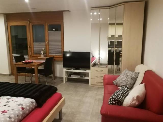 Este apartamento de 1 habitación está en la primera planta, tiene un balcón al sur y 1 cómoda y moderna cocina-salón con 2 camas plegables, un mueble esquinero con cómodas sillas, teléfono, SAT-TV, radio/reproductor de CD, secador de pelo, ducha/WC. Todas las ventanas tienen persianas.