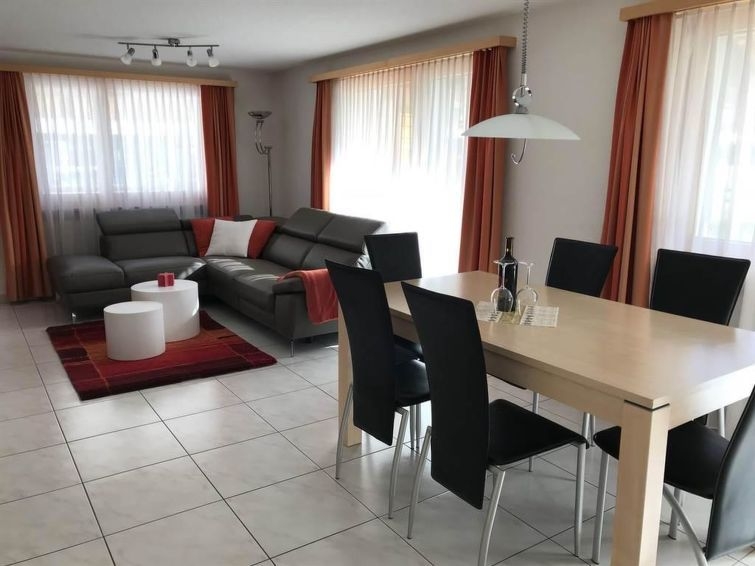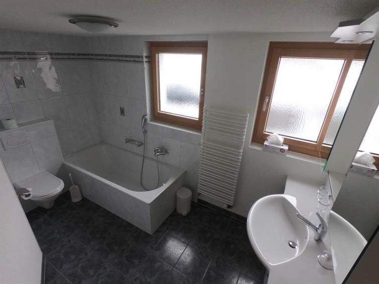 El apartamento para NO FUMADORES tiene 1 dormitorio individual, 1 dormitorio doble, 1 dormitorio para 3 personas, amplio salón combinado con una gran cocina moderna. Hay un cuarto de baño/WC, un cuarto de ducha/WC, una TV vía satélite y una radio, almacén del esquí y del equipo y un área separada de la terraza con los muebles del jardín. El aparcamiento está al lado de la casa. No se admiten animales. Nuevo: ¡CHF 100,- reducción en la segunda semana!