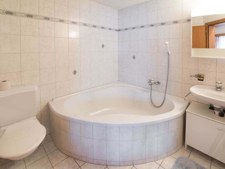 Piso de 3 ½ habitaciones con 4 camas. Amplio salón con TV y radio, 2 dormitorios dobles, cocina completamente amueblada con mesa y lavavajillas. Baño/WC, ducha/WC separados, 4 balcones, ascensor, aparcamiento.