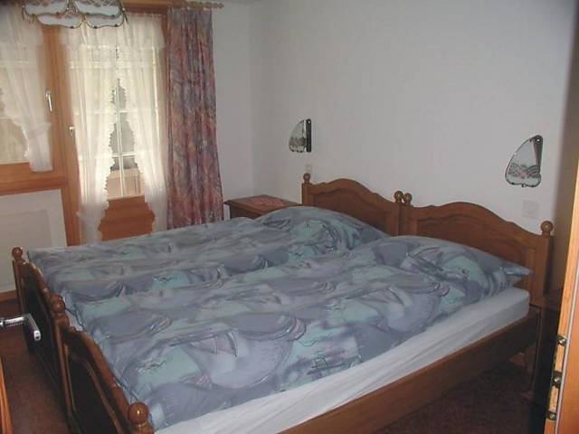 El apartamento de la planta baja está amueblado con una moderna cocina, un amplio salón, 2 habitaciones dobles (en una de ellas hay un lavabo) y ducha/WC. En el lado sur hay un asiento y en el lado oeste tiene un balcón. A petición, se puede instalar una cama supletoria en el salón. El apartamento está equipado con lavavajillas, cafetera, hervidor de agua, microondas, horno raclette, set de fondue, TV vía satélite, radio y W-Lan gratuito.