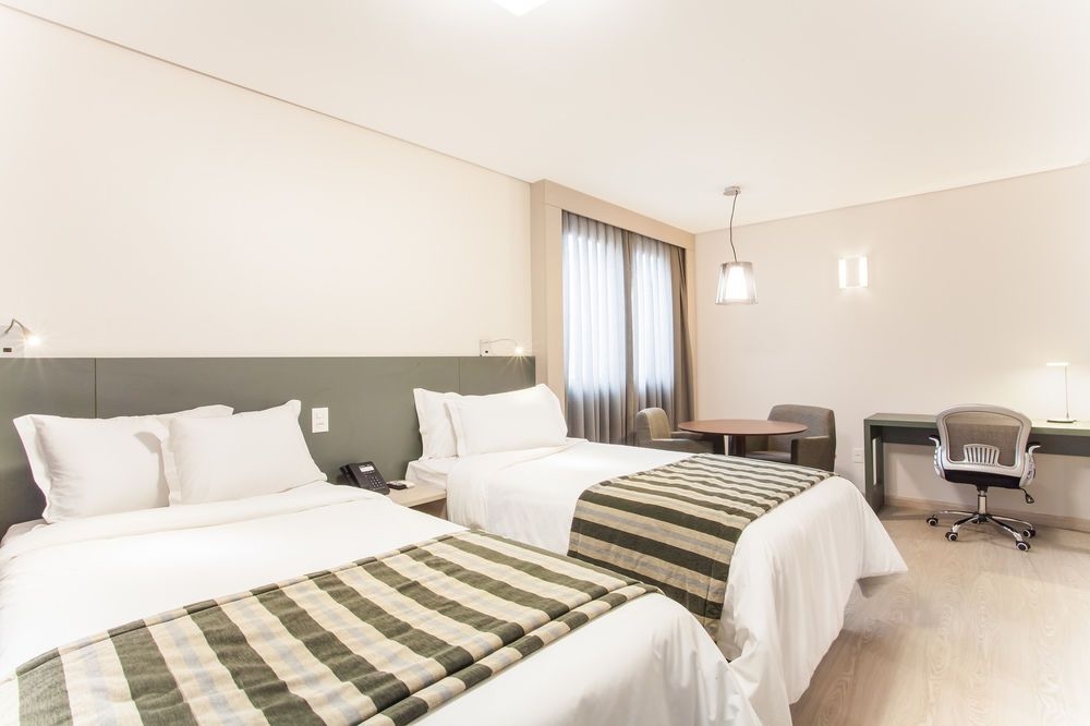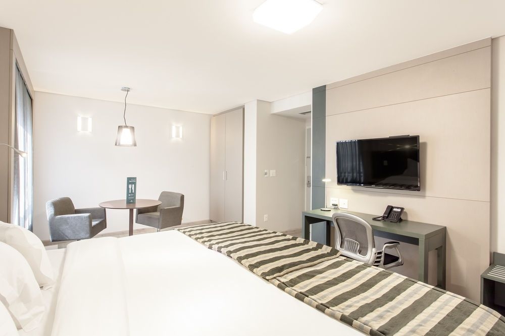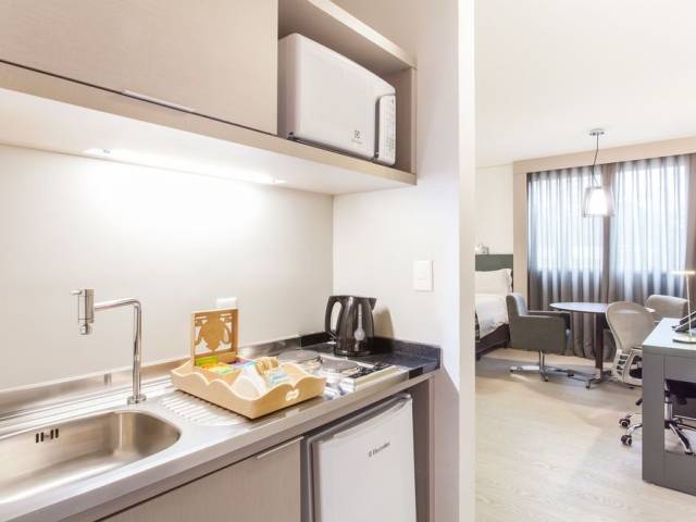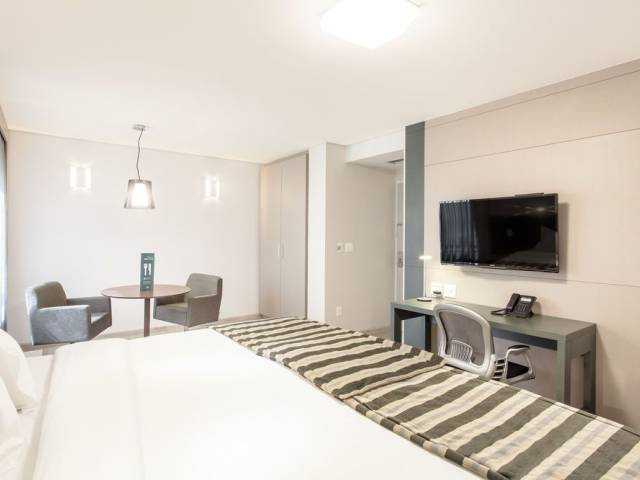 Reserva una de las 80 habitaciones climatizadas equipadas con cocina básica. La conexión a Internet wifi gratis te permite comunicarte con los tuyos, y en tus ratos libres podrás entretenerte con el televisión LED de 32 pulgadas con canales por cable. Entre las comodidades, se incluyen caja fuerte y escritorio, además de un servicio de limpieza disponible todos los días.Tienes un restaurante y una cafetería a tu disposición para comer algo, pero si lo prefieres, puedes llamar al servicio de habitaciones las 24 horas de este hotel. Qué mejor forma de acabar el día que con una bebida en el bar o lounge. Se ofrece un desayuno bufé gratuito todos los días de 6:00 a 10:00.Tendrás un centro de negocios, periódicos gratuitos en el vestíbulo y tintorería o lavandería a tu disposición. Hay un aparcamiento sin asistencia (de pago) disponible.Si decides alojarte en eSuites Sion - Savassi, te encontrarás en una fantástica zona de Belo Horizonte (Sion) y apenas te separarán diez minutos en coche de Avenida Afonso Pena y Plaza Savassi. Además, este hotel se encuentra a 5,8 km de Plaza Siete de Septiembre y a 7,5 km de Iglesia bautista Lagoinha.Las distancias se expresan en números redondos. Avenida Afonso Pena: 1,3 km Teatro Dom Silvério: 1,7 km Auditorio Chevrolet Hall: 1,8 km Museo de las Telecomunicaciones Oi Futuro: 1,8 km Plaza Savassi: 2,3 km Centro cultural Casa Fiat de Cultura: 2,3 km Museo del Juguete: 2,6 km Plaza del Papa: 2,6 km Palacio da Liberdade: 2,9 km Edificio Niemeyer: 2,9 km Teatro Bradesco: 2,9 km Centro cultural Banco de Brasil: 3 km Museo Homem Brasileiro: 3,1 km Espacio Tim UFMG del Conocimiento: 3,1 km Museo de las Minas y el Metal MM Gerdau: 3,1 km Aeropuertos más cercanos: Belo Horizonte (CNF-A. Internacional Tancredo Neves): 46,7 km Belo Horizonte (PLU): 13,5 km Aeropuerto recomendado para eSuites Sion - Savassi: Belo Horizonte (CNF-A. Internacional Tancredo Neves).