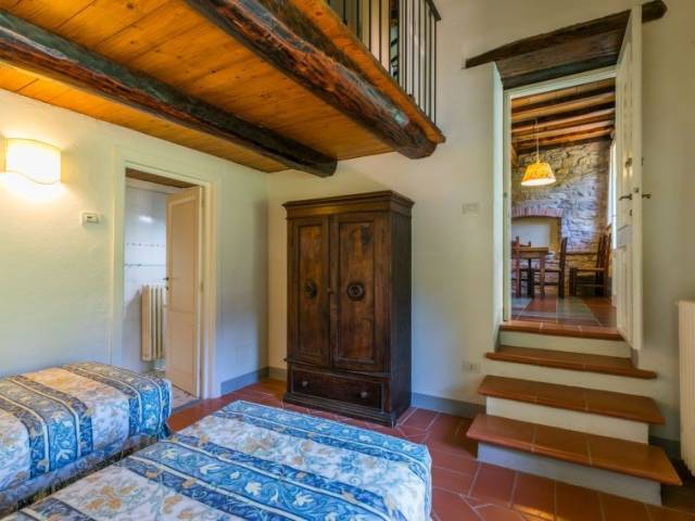 "Il Cottage", casa 3 estancias 100 m2 en 2 plantas, en la planta baja. Con mobiliario confortable y rústico: comedor. Salida al jardín. 1 dorm. con 2 camas y ducha/bidet/WC. Salida al jardín. Rincón-cocina (4 fogones, horno, lavavajillas, tostadora, hervidor de agua eléctrico, microondas, congelador). Planta superior: salón con TV satélite. Salida al jardín. 1 dorm. doble con ducha/bidet/WC. Vista panorámica muy bonita al paisaje. El alojamiento dispone de: lavadora. Internet (Wifi, gratis). Adecuado para familias.