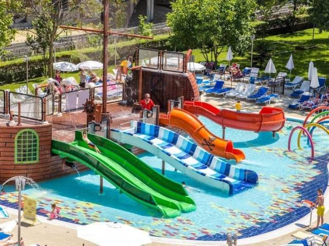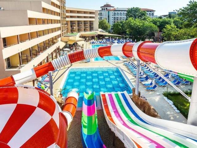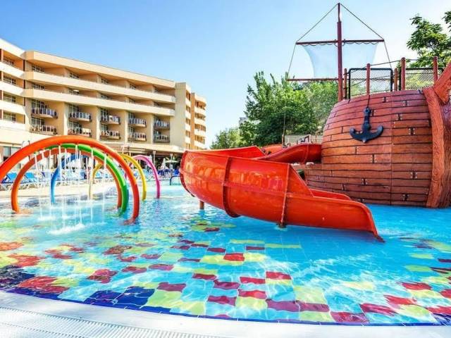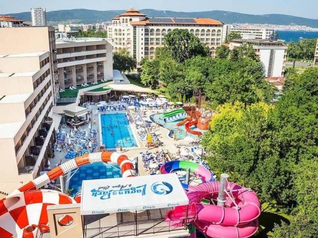 El Hotel Laguna Park and Aqua Club - All Inclusive, situado en el centro de Sunny Beach, a solo 250 metros de la playa, ofrece habitaciones con aire acondicionado y balcón y una piscina infantil con tobogán. También hay otras 2 piscinas con bares, un bar y una zona de juegos infantil con miniclub. También se proporciona acceso gratuito a un parque acuático. El Laguna Park cuenta con un restaurante principal con terraza al aire libre, varias tiendas pequeñas e instalaciones de bienestar. Para su seguridad, hay un médico residente en el Laguna.
