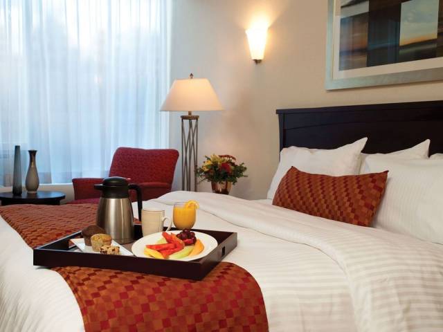 Hotel familiar conectado con el West Edmonton Mall, famoso por su variedad de salas temáticas y cerca de restaurantes y atracciones locales. - Número de habitaciones: 355 - Comodidades: aire acondicionado, TV, películas en la habitación (de pago), teléfono, acceso WIFI a Internet en la habitación (gratuito), radio despertador, cafetera, mini-nevera, secador de pelo, servicio diario de limpieza, habitaciones contiguas disponibles bajo petición, cama supletoria 20$ , Green Key. - Instalaciones: 12 plantas con ascensor, restaurante, bar, cafetería, piscina cubierta, gimnasio, actividades en las inmediaciones, tintorería, centro de negocios, casino en las inmediaciones, sala de juegos, tiendas, servicio de enlace con el aeropuerto (de pago), los niños de 4 años o menos comen gratis, aparcamiento gratuito. Nota: No disponible el 31 de diciembre.
