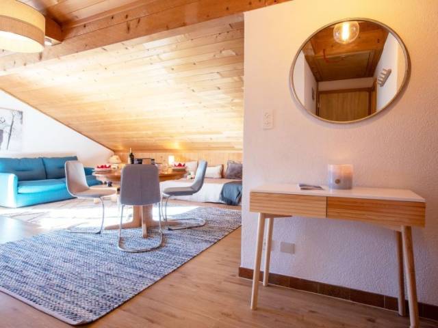 "Brotzet Ensoleillé 11", ático de 2 estancias 62 m2 en el 3° piso. Espacioso y luminoso, con mobiliario bonito y de buen gusto: salón-comedor abuhardillado con 1 sofá-cama (140 cm, 200 cm de longitud), mesa de comedor y TV (pantalla plana). Salida al balcón, orientación sur. 1 dorm., abuhardillado con 1 cama doble (1 x 140 cm). Cocina abierta (4 fogones, horno, tostadora, hervidor de agua eléctrico, congelador, cafetera eléctrica, Cápsulas de café (Nespresso) extra, horno Raclette) con barra americana. Baño/WC, WC separado. Balcón pequeño, orientación sur. Muebles de balcón. Vista bonita a las montañas. El alojamiento dispone de: secador de pelo. Internet (Wifi, gratis). A tener en cuenta: apartamento para no fumadores. Sin ascensor.