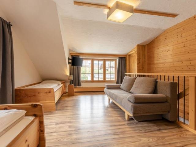 "Almchalet Grosseck", chalet de madera 3 estancias 105 m2. Parcialmente abuhardillado, con mobiliario agradable y con mucha madera: salón-dormitorio con 1 sofá-cama doble, mesa de comedor, TV satélite y canales internacionales (pantalla plana). Salida a la terraza. Cocina (horno, lavavajillas, 4 placas de vitrocerámica, hervidor de agua eléctrico, cafetera eléctrica, Cápsulas de café (Nespresso) extra). Ducha, WC separado, doble lavabo. Calefacción. Planta superior: 1 dorm. doble. Habitación de paso con 2 camas y 1 sofá-cama doble. Salida al balcón. Suelo de piedra natural. Mobiliario confortable de estilo rural. Balcón pequeño, terraza grande, jardín. Muebles de terraza, muebles de balcón. El alojamiento dispone de: Internet (Wifi, gratis). A tener en cuenta: casa para no fumadores.