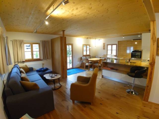 "Chalet Fanningberg", chalet de madera 3 estancias 112 m2. Luminoso, con mobiliario agradable y con mucha madera: salón-dormitorio con 1 sofá-cama doble, rincón-comedor, TV satélite y canales internacionales (pantalla plana). Salida a la terraza. Cocina abierta (horno, lavavajillas, 4 placas de vitrocerámica, cafetera eléctrica) con barra americana. Baño/ducha/WC. Calefacción, calefacción por suelo. Planta superior: 1 dorm. doble con baño/WC. Salida al balcón. 1 dorm. con 1 x 2 literas, 1 cama doble. Salida al balcón. Ducha/WC. Calefacción por suelo. Suelo de parquet. Mobiliario confortable de estilo rural. Balcón, terraza, orientación sur. Muebles de terraza, muebles de balcón. El alojamiento dispone de: Internet (Wifi, gratis). A tener en cuenta: apartamento para no fumadores.