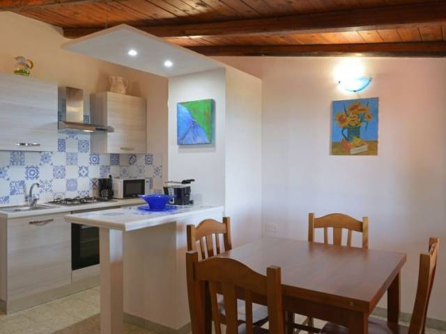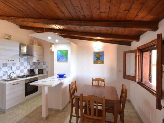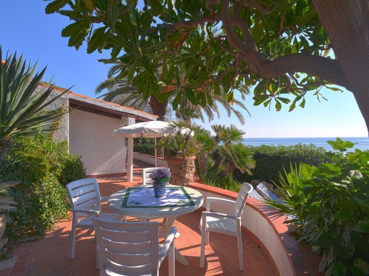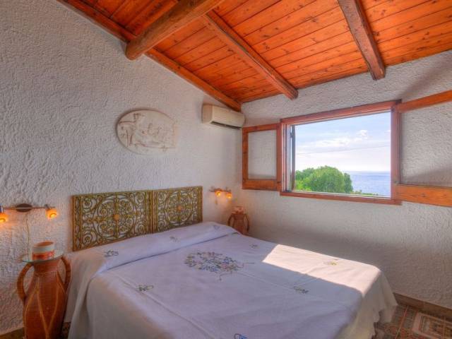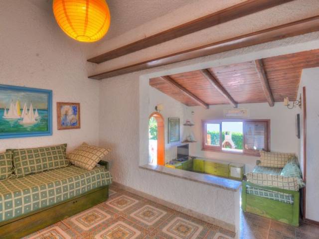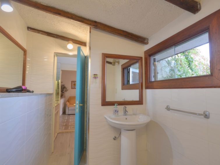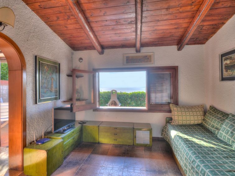 Villa 4 estancias 90 m2, en la planta baja, orientación sur. Con mobiliario confortable y rústico: salón con chimenea y TV satélite (pantalla plana). 1 dorm. doble con aire acondicionado y bomba de calor, caliente. 1 dorm. con 1 cama, aire acondicionado y bomba de calor, caliente. Salida a la terraza. Habitación de paso con 1 cama y ventilador. Cocina-comedor (horno, lavavajillas, 4 fuegos, tostadora, hervidor de agua eléctrico, microondas) con mesa de comedor. Salida a la terraza. Baño, ducha/bidet/WC. Calefacción, aire caliente. Calefacción disponible desde el 01.12. al 31.03, Calefacción no en todas las estaciones. Terraza grande 55 m2 parcialmente cubierta. Muebles de terraza, barbacoa, tumbonas. Vista bonita al mar. El alojamiento dispone de: lavadora, plancha, trona, cuna hasta 2 años (extra), secador de pelo. Internet (Wifi, gratis). Permitido máximo 1 mascota / perro.