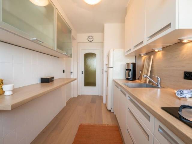 "Escape", apartamento de 4 estancias 90 m2 en el 6° piso. Luminoso, con mobiliario confortable y agradable: entrada. Salón-comedor con TV, TV digital y canales internacionales. 1 dorm. doble con 1 cama doble (140 cm, 200 cm de longitud). 1 dorm. para niños con 2 camas (90 cm, 200 cm de longitud). 1 dorm. doble con 1 cama doble (160 cm, 200 cm de longitud). Salida al balcón. Cocina (4 fogones, horno, lavavajillas, tostadora, hervidor de agua eléctrico, microondas, congelador, cafetera eléctrica). Baño/ducha, WC separado. Calefacción. Vista panorámica bonita al mar. El alojamiento dispone de: secador de pelo. Internet (Wifi, gratis). A tener en cuenta: casa para no fumadores. Detector de humo, extintores. 400374