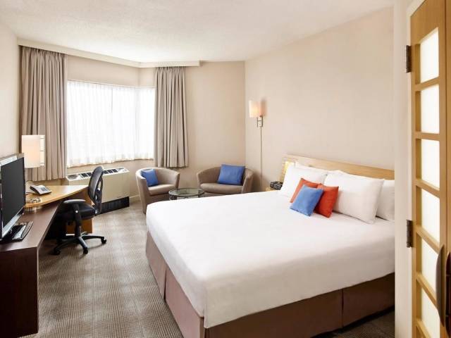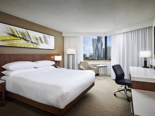 Te sentirás como en tu propia casa en cualquiera de las 315 habitaciones con frigorífico y televisión LED. La conexión a Internet wifi gratis te mantendrá en contacto con los tuyos; también podrás ver tu programa favorito en el televisor con canales por cable. El baño privado con bañera está provisto de artículos de higiene personal gratuitos y secadores de pelo. Entre las comodidades, se incluyen caja fuerte, escritorio y teléfono.Si quieres comer algo de cocina internacional, ve a Driftwood, restaurante con un bar o lounge. También tienes una cafetería a tu disposición. Se ofrece un desayuno bufé todos los días de 6:30 a 10:00 con un coste adicional.Tendrás un centro de negocios, un servicio de limusina o coche con chófer y check-in exprés a tu disposición. ¿Estás organizando un evento en Mississauga? En este hotel tienes a tu disposición 1022 metros cuadrados de espacio con zona para conferencias. Hay un aparcamiento sin asistencia (de pago) disponible.Si decides alojarte en Delta Hotels by Marriott Toronto Mississauga, disfrutarás de una magnífica ubicación en pleno centro de Mississauga, y apenas te separarán 15 minutos a pie de Centro comercial Square One y Plaza Mississauga Celebration. Además, este hotel sostenible se encuentra a 19,8 km de Parque High y a 23,2 km de Parque temático Ontario Place.Las distancias se expresan en números redondos. Centro comercial Square One: 0,9 km Plaza Mississauga Celebration: 1 km Biblioteca central de Mississauga: 1,1 km Living Arts Centre (centro artístico): 1,2 km Centro Cívico de Mississauga: 1,2 km Centro de ocio Playdium: 1,3 km Mississauga Grand Banquet and Convention Centre (centro de eventos): 5,5 km Zona Deportiva de Hershey: 5,8 km Iceland Arena (pista de patinaje sobre hielo): 5,8 km Paramount Fine Foods Centre: 6,2 km Lake Ontario: 6,4 km Parque Erindale: 6,4 km Universidad de Toronto en Mississauga: 7,6 km Heartland Town Centre (centro comercial): 8,1 km Dixie Outlet Mall (centro comercial): 8,4 km Aeropuertos más cercanos: Toronto, Ontario (YYZ-Pearson Intl.): 17,2 km Toronto, ON (YTZ-Billy Bishop Toronto City): 24,3 km Aeropuerto recomendado para Delta Hotels by Marriott Toronto Mississauga: Toronto, Ontario (YYZ-Pearson Intl.).