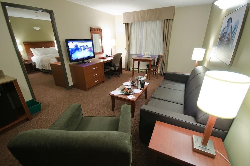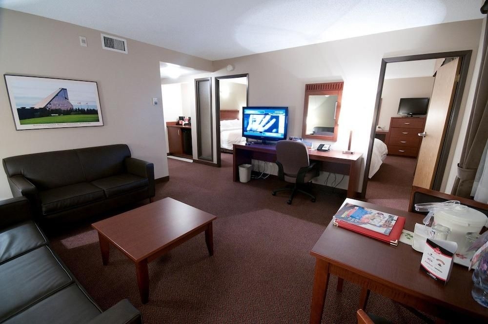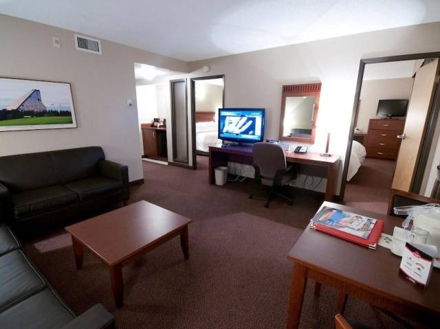 Descripción: Ubicación del establecimiento Canad Inns Destination Centre Fort Garry te sitúa en pleno corazón de Winnipeg, a poca distancia de Parque St. Vital y Universidad de Manitoba. Este hotel para familias se encuentra cerca de St. Vital Centre y de Grant Park Shopping Centre. Habitaciones Te sentirás como en tu propia casa en una de las 106 habitaciones con aire acondicionado, frigorífico y microondas. La conexión a Internet por cable y wifi es gratuita, y el televisor de pantalla plana con canales por satélite es ideal para entretenerse. El baño privado con ducha y bañera combinadas está provisto de artículos de higiene personal gratuitos y secador de pelo. Las comodidades incluyen escritorio, periódicos gratuitos y teléfono con contestador y llamadas locales gratuitas. Instalaciones recreativas, spa y servicios de primera No te pierdas las numerosas instalaciones recreativas, que incluyen piscina cubierta, tobogán acuático y bañera de hidromasaje. Encontrarás también mesa de billar, asistencia turística y para la compra de entradas y gimnasio cercano de uso gratuito. Comidas Satisfaga su apetito en el restaurante del hotel, que sirve desayunos, almuerzos y cenas. También tienes a tu disposición una cafetería y servicio de habitaciones con horario limitado. En el bar o lounge podrás saciar tu sed con tu bebida favorita. Servicios de negocios y otros Tendrás cambio de divisas, check-out rápido y periódicos gratuitos en el vestíbulo a tu disposición. ¿Planea celebrar un evento en Winnipeg? Este hotel dispone de 353 metros cuadrados de espacio para conferencias, reuniones y banquetes. Se ofrece servicio de transporte al aeropuerto (ida y vuelta) gratuito con horario limitado. Información de la habitación: Saber antes de ir Esta propiedad ofrece traslados desde el aeropuerto. Los huéspedes deben ponerse en contacto con el establecimiento con los detalles de la llegada antes de viajar, utilizando la información de contacto que figura en la confirmación de la reserva. No se admiten mascotas ni animales de servicio en este establecimiento. Tarifas El establecimiento cobra las siguientes tarifas y depósitos en el momento de realizar el servicio, el registro de entrada o el registro de salida. Cargo por salida tardía: CAD 10 La lista anterior puede no ser exhaustiva. Los cargos y depósitos pueden no incluir impuestos y están sujetos a cambios. Política del hotel: Es necesario presentar un documento de identidad con fotografía al hacer el registro de entrada. El importe se cargará en la tarjeta de crédito en el momento de efectuar la reserva. No se garantizan el tipo de cama ni las preferencias de fumador.Su reserva se paga por adelantado y está garantizada para llegadas tardías. El cargo total incluye todos los gastos e impuestos de la habitación, así como las tasas de acceso y reserva. Cualquier cargo incidental, como aparcamiento, llamadas telefónicas y servicio de habitaciones, se gestionará directamente entre usted y el establecimiento. Instrucciones para el registro de entrada: Pueden aplicarse cargos por persona extra que varían en función de la política del hotel. Es necesario presentar un documento de identidad con fotografía emitido por el gobierno y una tarjeta de crédito al hacer el registro de entrada para cubrir los cargos adicionales. Las peticiones especiales están sujetas a disponibilidad en el momento del registro de entrada y pueden conllevar cargos adicionales. Las peticiones especiales no se pueden garantizar. El nombre de la tarjeta de crédito utilizada al hacer el registro de entrada para pagar los gastos imprevistos debe ser el nombre principal que figura en la reserva de la habitación. Información sobre la propiedad: La hora de entrada es a partir de las 15:00 La hora de salida es a las 11:00