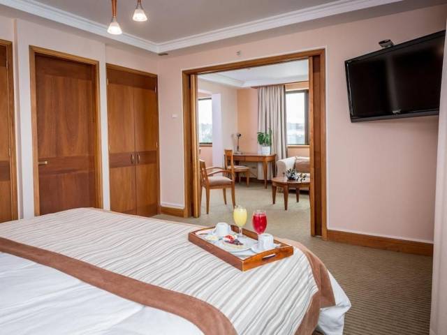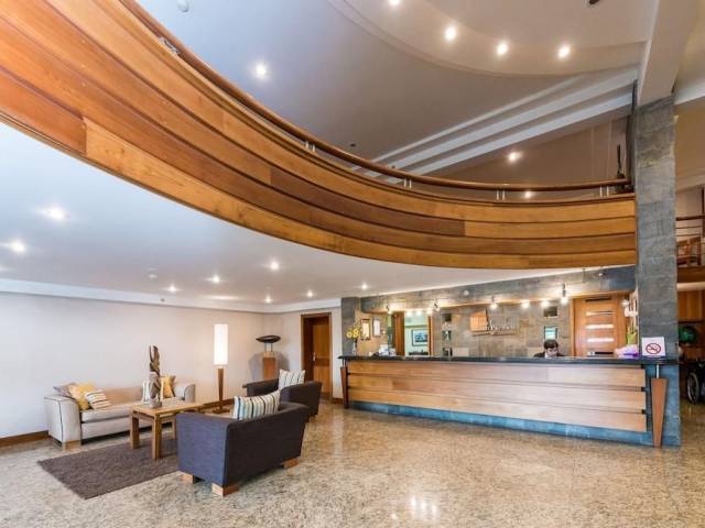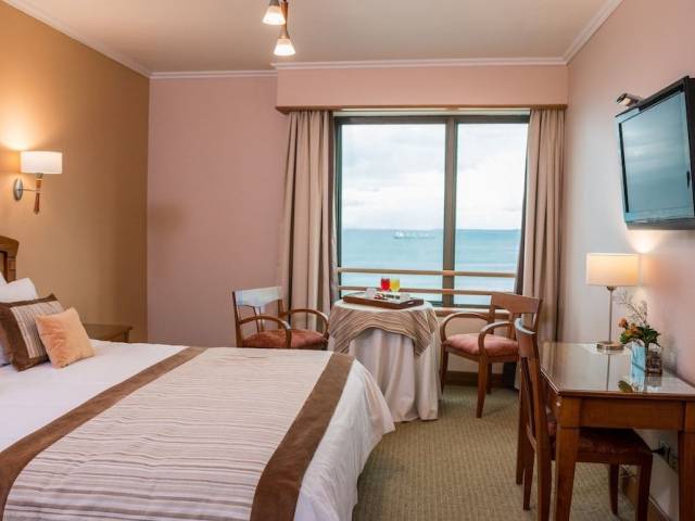 El HOTEL GRAN PACIFICO se encuentra en el corazón del centro de la ciudad. Tiene una ubicación céntrica en el centro de la ciudad de Puerto Montt. Pasee por Dimarsa, los grandes almacenes más grandes de la ciudad. Hay 48 cómodas suites, 32 suites ejecutivas, 14 suites junior y 2 suites individuales con las mejores vistas. Completamente equipadas, están insonorizadas, tienen TV de 25" y radiodespertador, baños de mármol, teléfono en el dormitorio y el baño, caja de seguridad, minibar, detector de humos y aspersores. Todo está pensado para una estancia perfecta. En la parte más alta del hotel Gran Pacifico hay un bar de aperitivos, un lugar de reuniones y relax para nuestros pasajeros. Con unas vistas espectaculares, es el lugar perfecto para relajarse con una bebida deliciosa o un exquisito vino chileno. Edificio moderno de gran altura. Este hotel está decorado de forma agradable con gran gusto. El HOTEL GRAN PACÍFICO es la puerta de entrada a la Patagonia chilena, un lugar elegante y moderno que favorece los negocio o el descanso, con las mejores vistas del sur de Chile. 12/10 RM