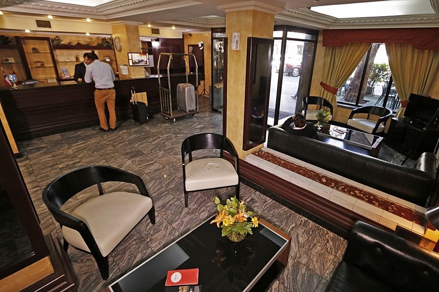 El Hotel Principado está situado en el pleno centro de Santiago de Chile, al lado de la estación de metro Baquedano y a pocos minutos del centro histórico y también del área financiera de la ciudad. En el Hotel Principado disponemos de unas instalaciones completas que hacen de nuestro hotel una buena opción para los viajeros que vistan Santiago de Chile. Gracias a nuestra céntrica situación nuestros huéspedes tienen la posibilidad de acceder en poco tiempo a los lugares de interés turístico, a la zona financiera y a la zona de ocio, tales como restaurantes, bares, cafés, teatros, cines, etc. El Hotel Principado dispone de 45 habitaciones entre individuales, dobles y triples, todas ellas equipadas con baño privado, calefacción, televisión, minibar, etc.