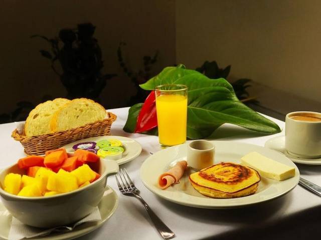 Hotel Portal del Norte está localizado en Armenia. Cuenta con wi-fi gratis en zonas comunes, estacionamiento gratis y valet parking, además de recepción 24 hrs.Necesitas saber: Accesible para personas con movilidad reducida Mascotas: no se admiten Propiedad libre de humoEl alojamiento sirve diariamente el desayuno, el cual se ofrece en el bar.Entre las comodidades se destacan servicio de niñera, venta de entradas, centro de negocios y sala de reuniones. Los huéspedes también podrán disfrutar de biblioteca y terraza. Por un suplemento, la propiedad cuenta con servicio de traslado al aeropuerto, servicio de guarda-equipaje y servicio de lavandería.