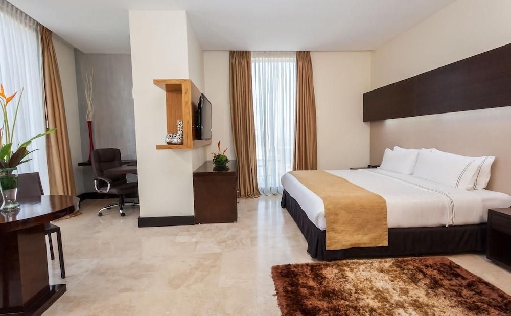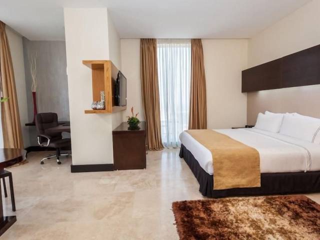 GHL Hotel Barranquilla se encuentra en Barranquilla. Cuenta con wi-fi gratis en zonas comunes, sauna y estacionamiento gratis, además de gimnasio.Necesitas saber: Caja fuerte en la recepción Propiedad libre de humoEl alojamiento sirve diariamente el desayuno con costo adicional, el cual se ofrece en el bar. También dispone de snack bar.Entre las comodidades se destacan recepción 24 hrs, venta de entradas, centro de negocios y sala de reuniones. Los huéspedes también podrán disfrutar de cajero automático y peluquería. Por un costo adicional, la propiedad cuenta con servicio de traslado al aeropuerto, servicio de traslado en los alrededores y servicio de guarda-equipaje.