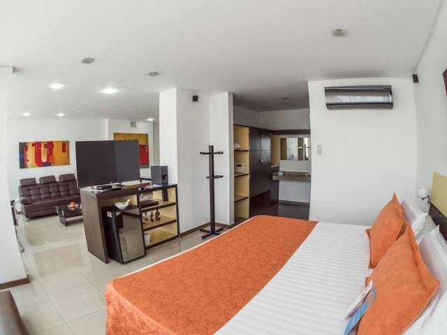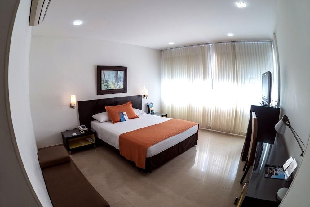 El hotel se ubica a 30 minutos del aeropuerto internacional de Palonegro, en medio de una excelente zona residencial y cerca de centros de negocios, oficinas gubernamentales, centros comerciales, bares y restaurantes.El hotel fue renovado en 2010 y es la mayor y más moderna estructura de la ciudad. Cuenta con 14 habitaciones temáticas, con un total de 162 habitaciones. También se ofrece un centro de negocios. Los huéspedes son bienvenidos en el establecimiento climatizado en un vestíbulo con servicio de recepción y salida 24 horas. El establecimiento también cuenta con caja fuerte, servicio de cambio de divisas, ascensor, salón de peluquería, sala de juegos y sala de TV. Los más jóvenes se divertirán en el parque infantil. Los huéspedes pueden comer en la cafetería o restaurante, o disfrutar de su bebida favorita en el bar. Los huéspedes en viaje de negocios apreciarán con seguridad las instalaciones para conferencias. A disposición de los huéspedes también hay conexión a Internet WiFi, servicio de habitaciones y de lavandería, y aparcamiento y garaje.Las habitaciones cuentan con aire acondicionado regulable, TV, sistema de agua caliente central, caja fuerte, escritorio de ejecutivo, conexión a Internet WiFi y cuarto de baño privado con ducha y secador de pelo. Las habitaciones también vienen con cama doble, radio, minibar y nevera.Los huéspedes pueden darse un refrescante chapuzón en la piscina al aire libre y los niños tienen su propia zona de baño. Se sirven refrescos en el chiringuito. El hotel ofrece además terraza, gimnasio, bañera de hidromasaje, sauna, sala de vapor y tratamientos de masajes y spa para garantizar una estancia placentera. Los que quieran jugar al golf durante su estancia pueden dirigirse al Ruitoque Country Club, a unos 20 minutos en transporte público.El hotel dispone de un restaurante. Se sirve desayuno continental de bufet todas las mañanas. El almuerzo y la cena son de bufet, de menú o a la carta.