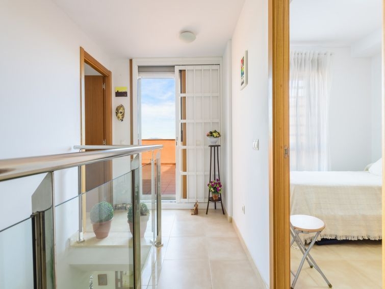 "Algaida", apartamento de 4 estancias 100 m2 en 2 plantas en el 11° piso. Con mobiliario funcional y confortable: salón-comedor con mesa de comedor, TV digital, pantalla plana, aire acondicionado y bomba de calor, caliente. Salida a la terraza. 1 dorm. con 1 cama de matrimonio (150 cm, 200 cm de longitud), aire acondicionado y bomba de calor, caliente. Cocina (horno, lavavajillas, 4 placas de vitrocerámica, tostadora, hervidor de agua eléctrico, microondas, congelador, cafetera eléctrica, Cápsulas de café (Dolce Gusto) extra). Baño/bidet/WC. Planta superior: 1 dorm. con 2 camas (90 cm, 200 cm de longitud), aire acondicionado y bomba de calor, caliente. 1 dorm. con 1 cama-nido (2 x 90 cm, 190 cm de longitud). Baño/WC. Terraza terraza grande 40 m2. Muebles de terraza. El alojamiento dispone de: lavadora, plancha, trona, cuna hasta 2 años, secador de pelo. Internet (Wifi, gratis). Plaza de aparcamiento n. 10 (cubierto) junto a la casa. A tener en cuenta: adecuado para familias. Apartamento para no fumadores. R000000001