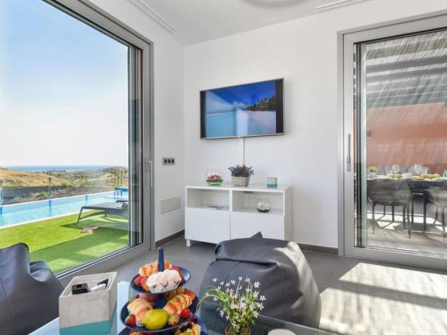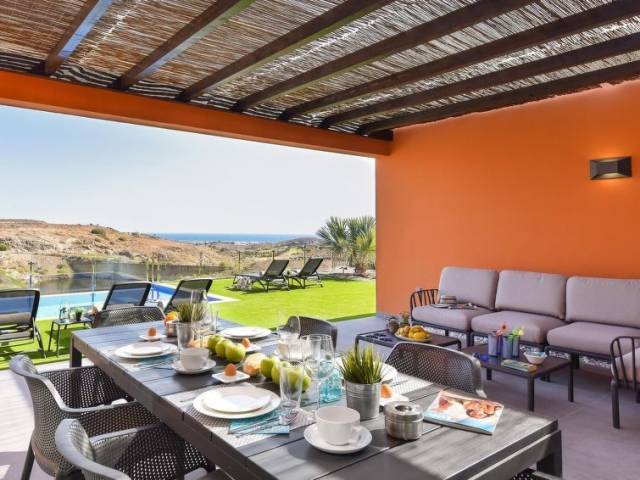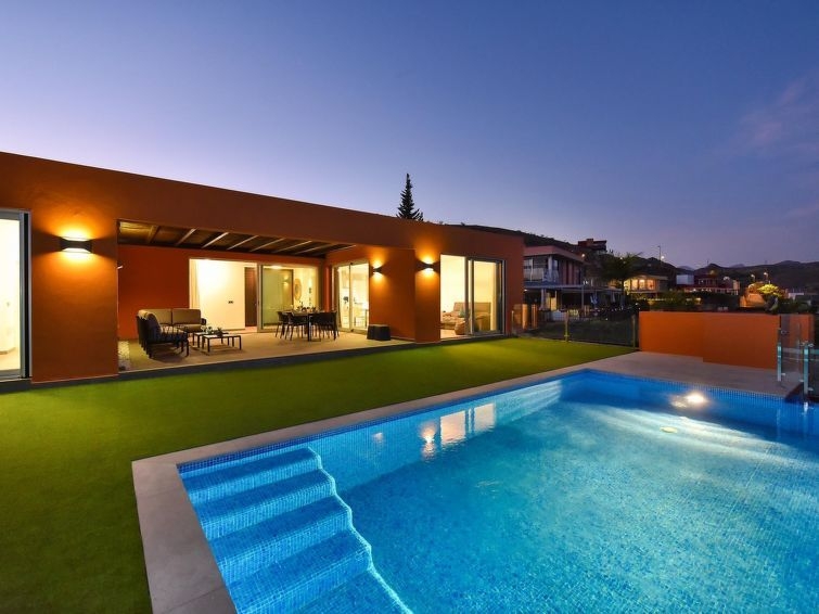 Villa "La Isla 6", rodeada de campos. En el centro de Salobre Golf Resort, en la periferia, a 5 km del centro de Maspalomas, a 7 km del centro de Meloneras, lugar tranquilo, soleado. Privado: terreno, jardín, terreno con hierba, piscina (8 x 4 m, Disponible por temporada: 01.Ene. - 31.Dic.). En el inmueble: lavadora, secadora. Tienda 4 km, supermercado 3 km, restaurante 200 m, playa de arena "3000". Campo de golf 50 m. A tener en cuenta: coche recomendable. Equipamiento para bebés a demanda. El propietario no acepta grupos.