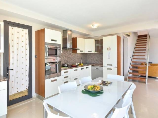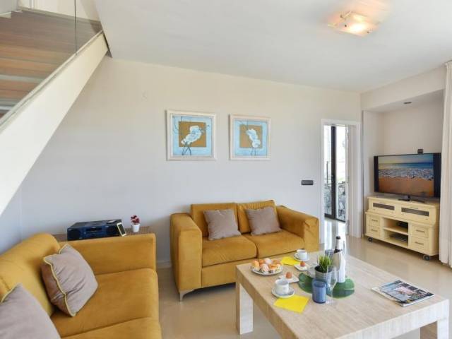 Casa 4 estancias 115 m2 en 2 plantas. Con mobiliario moderno y agradable: salón con TV satélite, TV cable, TV digital, equipo de música, DVD y aire acondicionado. Salida a la terraza. 1 dorm. con 1 cama de matrimonio, ducha/WC y aire acondicionado. Cocina abierta (horno, lavavajillas, 3 placas de vitrocerámica, tostadora, hervidor de agua eléctrico, microondas, congelador, cafetera eléctrica) con mesa de comedor. WC separado. Planta superior: 1 dorm. con 1 cama de matrimonio, ducha/bidet/WC y aire acondicionado. Salida al balcón. 1 dorm. con 2 camas, ducha/WC y aire acondicionado. Terraza. Muebles de terraza, tumbonas. Vista al mar y a las montañas. El alojamiento dispone de: lavadora, caja fuerte, plancha, trona, cuna hasta 2 años, secador de pelo. Internet (Wifi, gratis). Plaza de aparcamiento (1 coche). A tener en cuenta: casa para no fumadores. 1 mascota / perro. 2016/3514