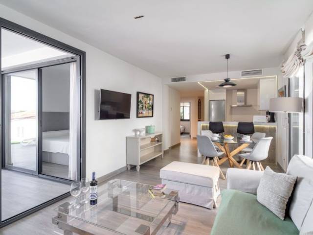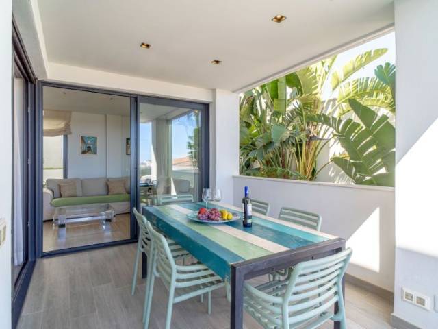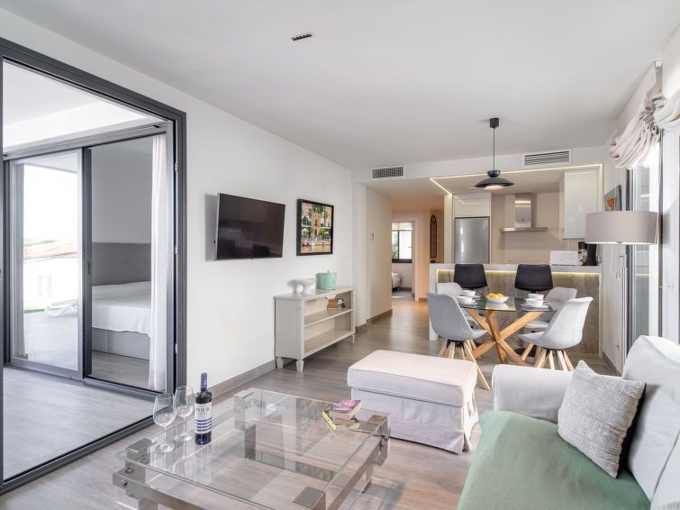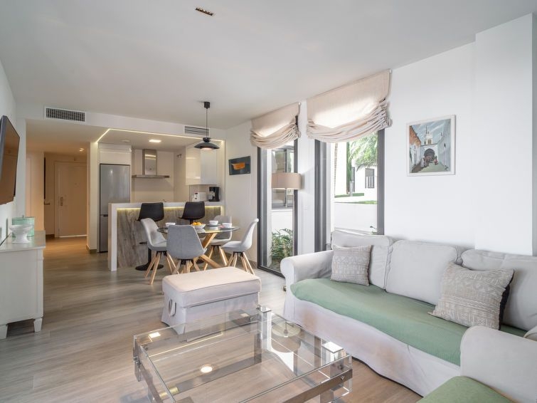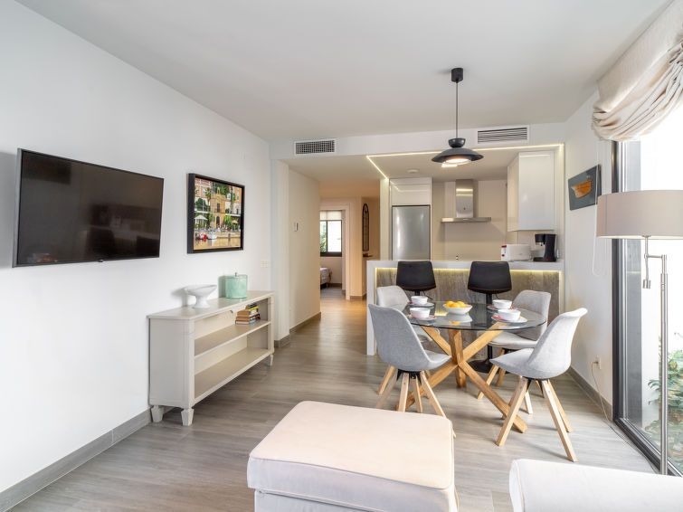 "Royal", casa pareada 4 estancias 120 m2, orientación sur. Luminoso, con mobiliario confortable y moderno: salón-comedor con TV digital, aire acondicionado y bomba de calor, caliente. Salida a la terraza. 1 dorm. con 2 camas (90 cm, 190 cm de longitud), aire acondicionado y bomba de calor, caliente. 1 dorm. con 2 camas (90 cm, 190 cm de longitud), aire acondicionado y bomba de calor, caliente. 1 dorm. con 1 cama de matrimonio (150 cm, 190 cm de longitud), ducha/WC, aire acondicionado y bomba de calor, caliente. Cocina abierta (horno, lavavajillas, 4 placas de vitrocerámica, tostadora, hervidor de agua eléctrico, microondas, congelador, cafetera eléctrica). Ducha/WC. Terraza grande. Muebles de terraza, barbacoa, tumbonas. Vista lateral al mar y a las montañas. El alojamiento dispone de: lavadora, plancha, trona, cuna, secador de pelo. Internet (Wifi, gratis). VFT/MA/51075