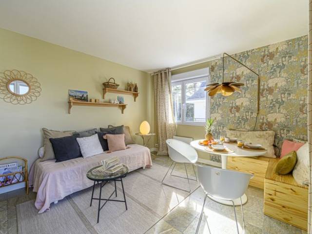 "Kermario", apartamento de 2 estancias 37 m2 en el 2° piso. Completamente reformado: salón-comedor. Salida al balcón. 1 dorm. con 1 cama de matrimonio (1 x 140 cm, 190 cm de longitud), TV (pantalla plana). Salida al balcón. Cocina abierta (horno, 4 placas de vitrocerámica, tostadora, hervidor de agua eléctrico, cafetera eléctrica). Ducha/WC. Calefacción eléctrica. Balcón pequeño 2 m2, orientación norte. Muebles de balcón. Vista parcial al mar. El alojamiento dispone de: lavadora, secador de pelo. Internet (Wifi, extra). A tener en cuenta: detector de humo. Oferta de un particular según el art. 155, IV del CGI.