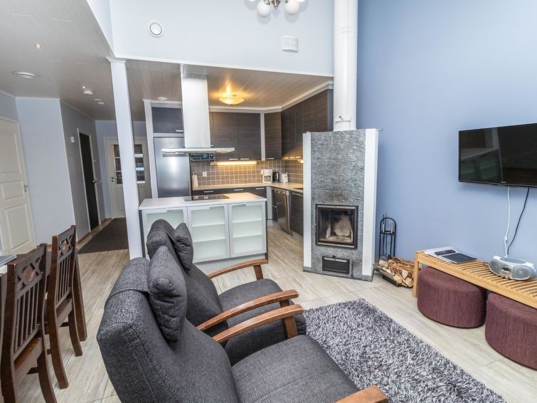 21 km al norte de Kuusamo, Ruka a 6,7 km, estanque Hirsilampi a 200 m, lago Pyhäjärvi a 300 m. Apartamento en casa adosada, construido en 2013, dormitorio 1: cama doble, dormitorio 2: 2 camas, salón: sofá-cama para 2 personas, cocina-salón combinada, sauna eléctrica. Cómodo apartamento en casa adosada en medio de la naturaleza. Equipamiento adicional: trona de uso compartido, pedir trona al conserje. Olla para niños pequeños. Cabaña de parrilla de uso compartido. Otras distancias: Pyhävaara 800 m, ruta a Pyhävaara 50 m. Parque nacional Oulanka 27 km. Información adicional: pista de esquí y motonieve a 50 m. Almacén en el centro de la casa adosada. Las reservas empiezan a las 16.00 y terminan a las 12.00.
