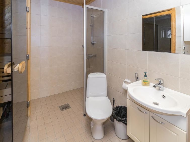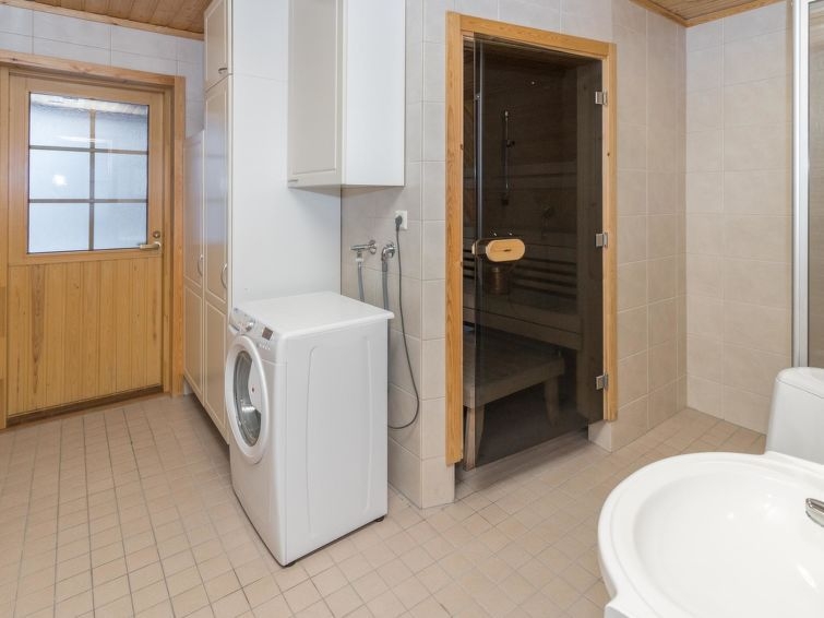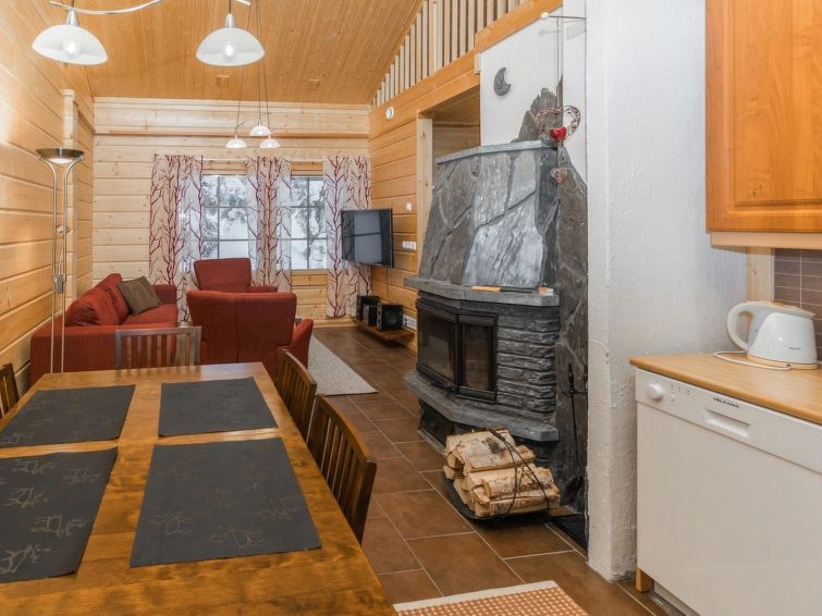 Permitido máximo 1 mascota / perro. ¡Impresionante apartamento adosado en Vuosseli de Ruka! ¡Bienvenido a un acogedor y espacioso apartamento adosado construido en 2009 en la zona de Vuosseli de Ruka! El apartamento ofrece comodidad y espacio para todo tipo de compañeros de viaje. Hay dos dormitorios, uno con una cama doble y una cama junior extensible y el otro con dos camas separadas. En el altillo hay cuatro camas individuales, lo que ofrece flexibilidad de alojamiento. La ubicación es ideal para familias y grupos que disfrutan del aire libre. La estación de esquí de Ruka y el valle de Ruka están a sólo 1,5 km. En el valle de Ruka encontrará todos los servicios necesarios y un telecabina proporciona fácil acceso sobre las colinas hasta el pueblo de Ruka. Aquí podrá pasar unas vacaciones activas durante todo el año. El apartamento cuenta con una cocina-salón bien equipada y una sauna eléctrica para mayor comodidad durante sus vacaciones. Venga a disfrutar del encantador entorno de Ruka y pase unas vacaciones inolvidables en este encantador apartamento. ¡Ponte en contacto con Lomarenkaas para reservar el tuyo! Más información. Se admiten animales de compañía. Otras distancias: Parque Nacional de Oulanka/Small Bear Loop 28 km, Riisitunturi 32 km.