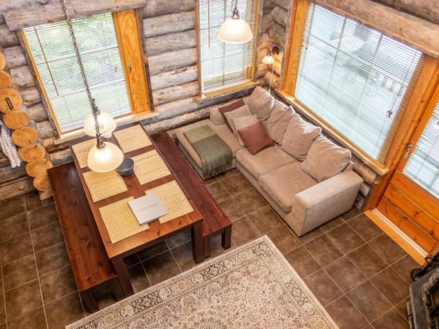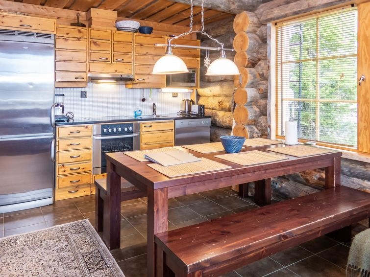 Una atmosférica mitad de una casa de campo construida en 2006 en la popular zona de casas de campo de Saarua-aho. La cabaña dispone de dos acogedores dormitorios, ambos con dos cómodas camas. Además, el espacioso loft tiene cuatro colchones de tronco. La casa de campo ofrece alojamiento para un máximo de seis personas y su excelente ubicación a sólo un kilómetro de las pistas y servicios de Vuossel la convierte en el destino perfecto para los veraneantes activos. Desde la casa se puede salir directamente a la naturaleza para vivir aventuras en todas las estaciones. Puede llegar fácilmente al pueblo de Ruka en autobús o telecabina. La cabaña también cuenta con una acogedora cocina/sala de estar y una relajante sauna eléctrica para garantizar unas vacaciones perfectas. El restaurante, la tienda y otros servicios más cercanos se encuentran en el valle de Ruka (consulte los horarios de apertura). La limpieza final está incluida en el precio. Parque Nacional de Oulanka/excursión a los osos pequeños a 29 km, Kuusamo Golf a 24 km.