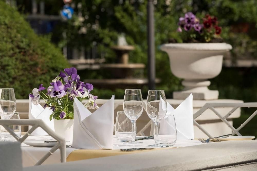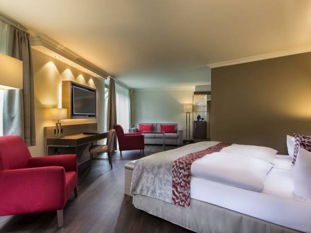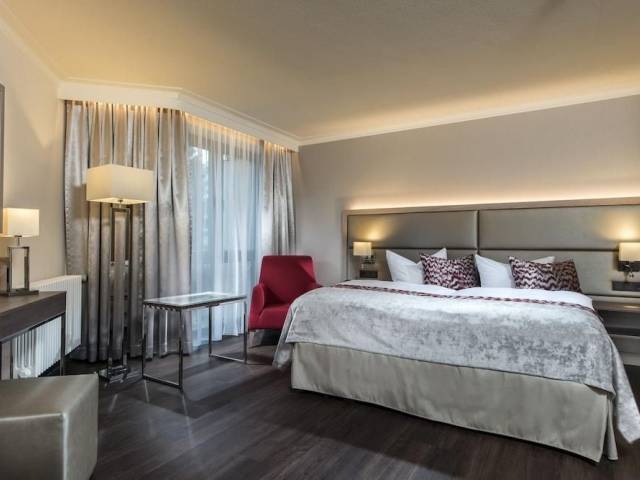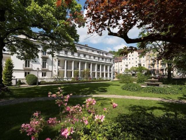 El hotel de 4 estrellas superior Radisson Blu Badischer Hof Hotel, Baden-Baden, con su moderno anexo, está situado cerca del centro de la ciudad de Baden-Baden, a pocos minutos a pie de la famosa Festspielhaus (ópera de Baden-Baden), el Kurhaus. , sus hermosos jardines y el histórico casino. Pase la noche en el encantador ambiente de uno de los hoteles más tradicionales e históricos de Baden-Baden, en la hermosa Selva Negra. Disfrute también del elegante restaurante Park, que ofrece una excelente cocina regional e internacional con exquisitos vinos. En 2016 se completaron los trabajos de renovación en nuestro hotel spa. 147 habitaciones de hotel estaban equipadas con muebles nuevos y detalles técnicos modernos. Las áreas públicas como el vestíbulo, el restaurante, las salas de conferencias y la impresionante sala del monasterio también fueron renovadas. Las características modernas y el diseño fresco armonizan perfectamente con los elementos históricos del antiguo monasterio de Capucin. Los huéspedes del hotel también pueden esperar nuevos servicios como High-Tea por la tarde, servicio de cobertura y un nuevo concepto gastronómico.