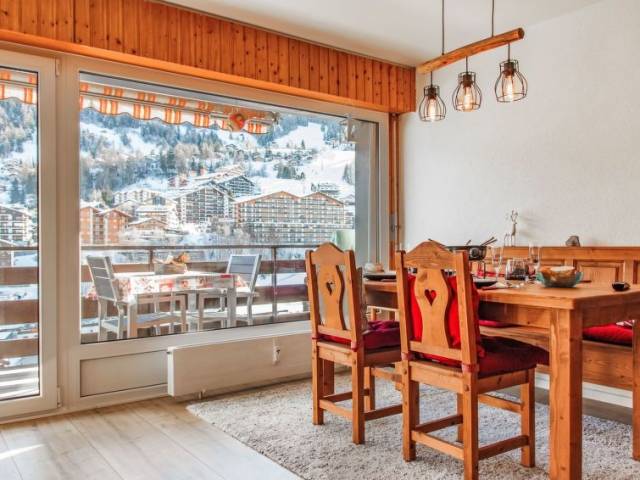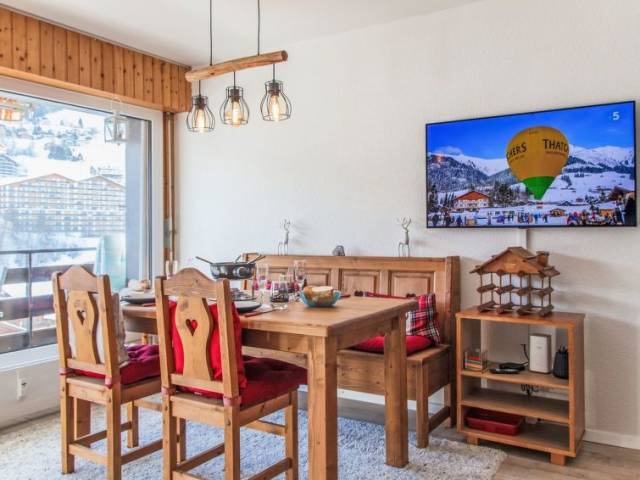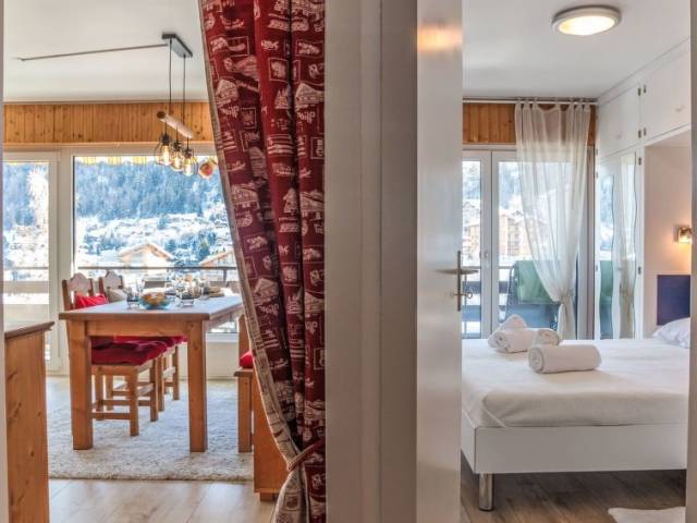 "Aiglon E2", apartamento de 2 estancias 60 m2 en el 1° piso. Con mobiliario confortable y bonito: entrada. Salón-comedor con 1 sofá-cama (140 cm, 200 cm de longitud), TV cable. Salida al balcón. 1 dorm. con 1 cama doble (190 cm, 200 cm de longitud). Cocina (3 fogones, horno, tostadora, hervidor de agua eléctrico, cafetera eléctrica, Cápsulas de café (Nespresso) extra, horno Raclette, set de Fondue (queso)). Baño/WC. Calefacción. Balcón, orientación sur. Muebles de terraza. Vista bonita a las montañas. El alojamiento dispone de: Internet (Wifi, gratis). A tener en cuenta: apartamento para no fumadores.