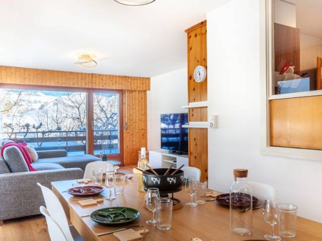 "Aiglon J2", apartamento de 3 estancias 75 m2 en el 2° piso. Vivienda adecuada para 2 adultos + 4 niños. Parcialmente reformado en 2023, con mobiliario bonito y agradable: entrada. Salón-comedor con TV cable. Salida al balcón. 1 dorm. con 1 cama de matrimonio (160 cm, 190 cm de longitud). 1 dorm. para niños 9 m2, pequeño con 2 x 2 literas (80 cm, 190 cm de longitud). Cocina (horno, lavavajillas, 4 placas de vitrocerámica, tostadora, hervidor de agua eléctrico, microondas, cafetera eléctrica, Cápsulas de café (Delizio) extra, horno Raclette, set de Fondue (chinoise, queso)). Baño/WC, WC separado. Balcón grande, orientación noreste y orientación sur. Muebles de balcón, barbacoa. Vista a las montañas. El alojamiento dispone de: secador de pelo. Internet (Wifi, gratis). A tener en cuenta: apartamento para no fumadores.