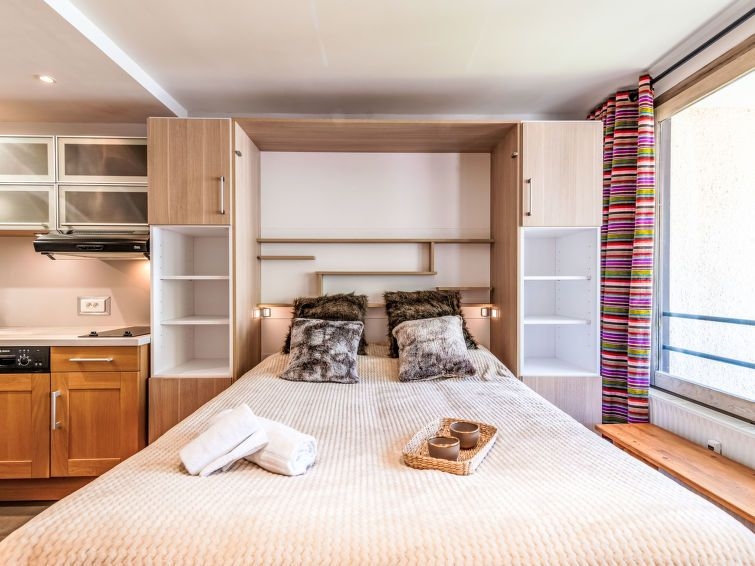 Estudio de 2 estancias 20 m2 en el 4° piso. Reformado, con mobiliario confortable y bonito: salón-comedor con 1 cama abatible de matrimonio (140 cm, 190 cm de longitud), TV (pantalla plana). Salida al balcón, orientación sur. Cabina con 1 x 2 literas (80 cm, 190 cm de longitud). Cocina abierta (horno, lavavajillas, 2 placas de vitrocerámica, tostadora, hervidor de agua eléctrico, cafetera eléctrica). Ducha/WC. Calefacción gasóleo. Balcón pequeño 3 m2, orientación sur. Muebles de balcón. El alojamiento dispone de: Internet (Wifi, gratis). A tener en cuenta: adecuado para familias. Apartamento para no fumadores. Detector de humo.