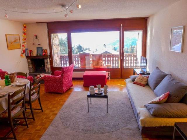 Residencia "Robin des Bois". Por debajo Crans, en la periferia, a 1.5 km del centro de Crans, lugar tranquilo, soleado, zona con poco tráfico, a 2 km de un lago, orientación suroeste. En el complejo: ascensor, sala para guardar bicicleta, sala guardaesquís, calefacción central, lavadora (extra), secadora (uso comunitario), secadero. Aparcamiento (número limitado). Tienda 1.6 km, supermercado 1.6 km, restaurante 750 m, panadería 1.6 km, parada autobús "Essampilles" 150 m, estación de tren "Funiculaire Montana Gare" 3.5 km, lago "Moubra" 3.1 km, lago Etang Long 2 km. Campo de golf (18 hoyos) 2 km, remontes 1.6 km. Lagos conocidos fácilmente accesibles: Lac d'Icogne 300 m, Lac Grenon 2.1 km, Etang Long 2 km. A tener en cuenta: skibus gratuito. La entrega de llaves se realiza por la agencia Interhome en Montana. "Robin des Bois B 15", apartamento de 3 estancias 75 m2 en el 1° piso. Con mobiliario bonito y agradable: salón-comedor con 1 sofá-cama (140 cm, 190 cm de longitud), TV cable, pantalla plana y DVD. Salida al balcón, orientación suroeste. 1 dorm. con 1 cama de matrimonio (160 cm, 200 cm de longitud). 1 dorm. con 2 camas (90 cm, 200 cm de longitud). Cocina abierta (3 fogones, horno, lavavajillas, tostadora, hervidor de agua eléctrico, cafetera eléctrica, Cápsulas de café (Nespresso) extra, horno Raclette, set de Fondue (chinoise, queso)) con barra americana. Baño/bidet/WC, ducha/WC. Balcón 8 m2. Muebles de balcón. Vista muy bonita a las montañas, al paisaje y al bosque. El alojamiento dispone de: secador de pelo. Internet (Wifi, gratis). Garaje n. 15, altura 198 cm, ancho 235 cm. A tener en cuenta: apartamento para no fumadores.