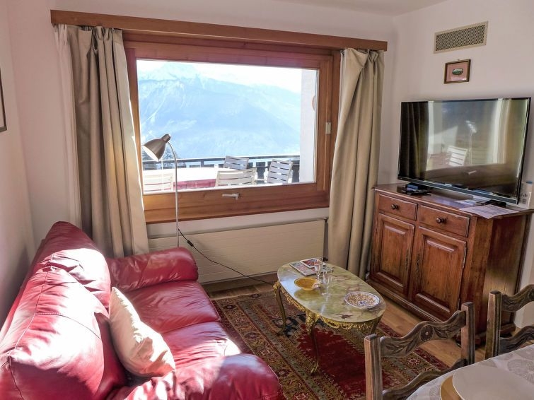 Chalet tipo suizo "Aglaia", confortable de 3 plantas, adosada por un lado, rodeado de árboles. Por debajo Montana, en el barrio de Miraval, a 2.5 km del centro de Montana, lugar tranquilo, soleado en un barrio residencial, zona con poco tráfico, a 3.3 km de un lago, a 2.3 km de la zona de esquì, en una calle sin salida, orientación sur. Privado: jardín. En el inmueble: calefacción central. En invierno se recomienda 4x4. Acceso por escaleras (34 escalones) hasta la casa. Tienda 2.5 km, supermercado 2.8 km, restaurante 2.5 km, panadería 2 km, parada autobús "Pradouvan" 700 m, estación de tren "Funiculaire Bluche" 1.7 km, lago "Moubra" 3.6 km, lago Grenon 3.3 km. Campo de golf (18 hoyos) 5.1 km, remontes 2.3 km. Lagos conocidos fácilmente accesibles: Lac Moubra 3.6 km, Etang Long 5.2 km. A tener en cuenta: coche recomendable. Adecuado para familias. Vivienda adecuada para 6 adultos + 4 niños. El propietario no acepta grupos de adolescentes/jóvenes. La entrega de llaves se realiza por la agencia Interhome en Montana, 3 km.