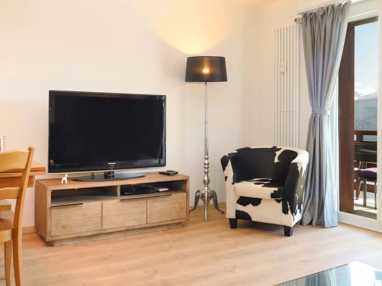 "Europa Ouest / APT 74", apartamento de 3 estancias 85 m2. Completamente reformado en 2023, con mobiliario confortable y de buen gusto: salón-comedor con TV cable. Salida al balcón, orientación sur. 1 dorm., orientación norte con 2 camas (90 cm, 200 cm de longitud). 1 dorm., orientación sur con 1 cama doble (2 x 90 cm, 200 cm de longitud). Grande cocina (lavavajillas, 4 placas de vitrocerámica, tostadora, hervidor de agua eléctrico, microondas, congelador, cafetera eléctrica, Cápsulas de café (Nespresso) extra, horno Raclette, set de Fondue (queso)). Salida al balcón, orientación norte. Ducha, WC separado. Balcón grande 10 m2, orientación sur, balcón 5 m2, orientación norte. Vista muy bonita a las montañas, al valle y al paisaje. El alojamiento dispone de: plancha, secador de pelo. Garaje n. E2 1 a 80 m, altura 200 cm, ancho 230 cm. A tener en cuenta: apartamento para no fumadores. Permitido máximo 1 mascota / perro.